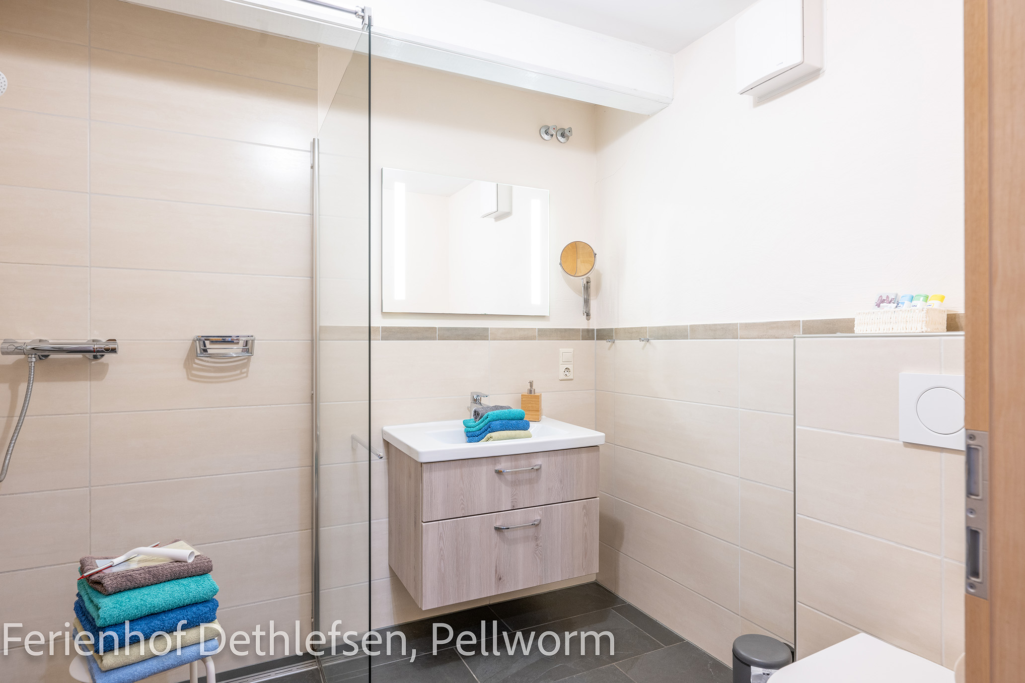 Duschbad / WC mit Fußbodenheizung, Fön