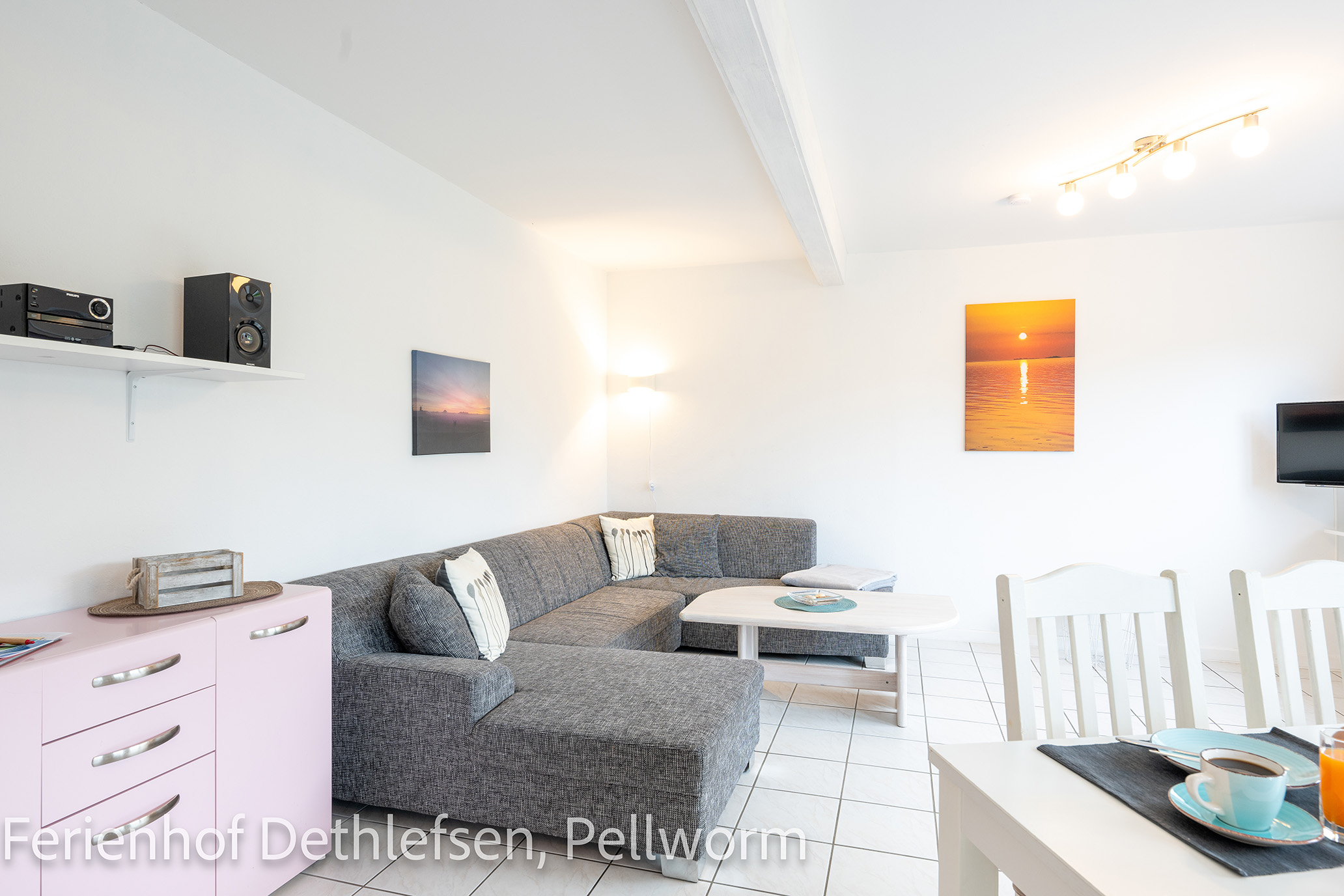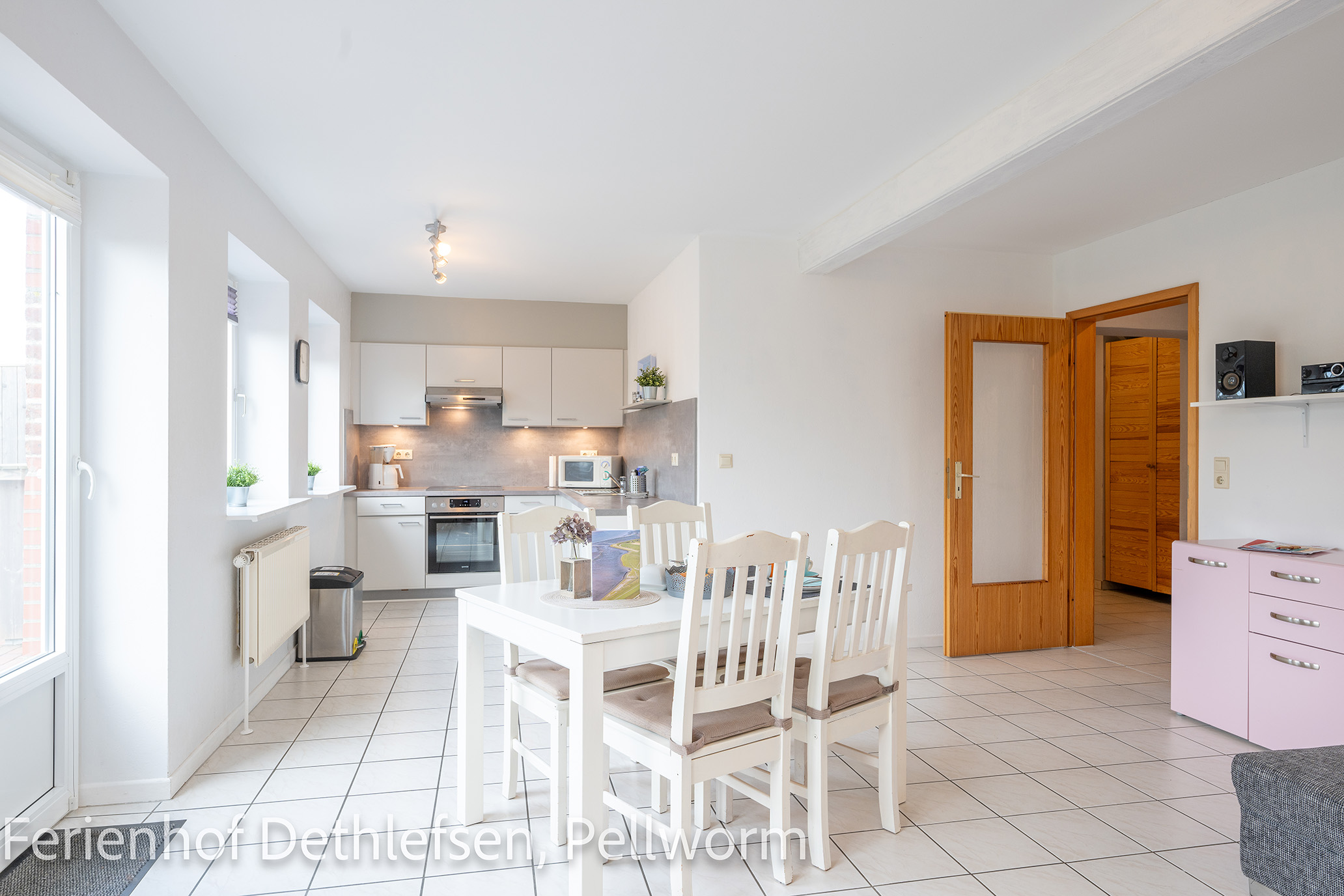 Das Besondere an dieser 80 qm großen Ferienwohnung ist die große Sonnenterrasse! Geniesse hier windgeschützt die Sonne und den herrlichen Blick über die weiten Wiesen von Pellworm.